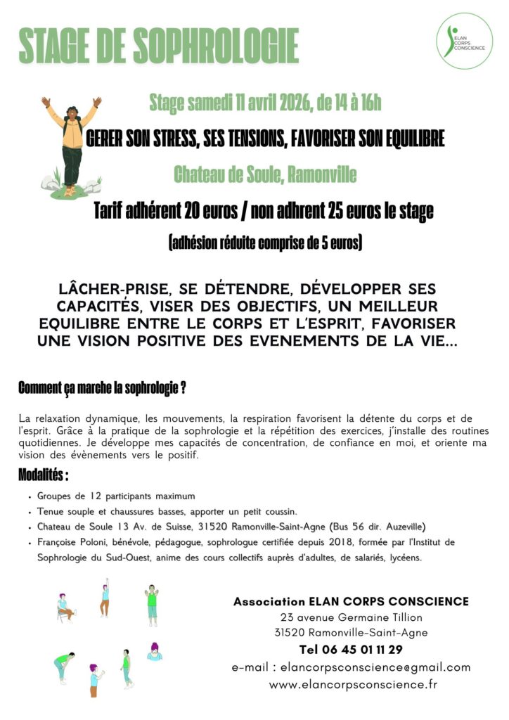 Sophrologie le 11 avril 2026 : Gérer son stress, ses tensions, favoriser son équilibre.
